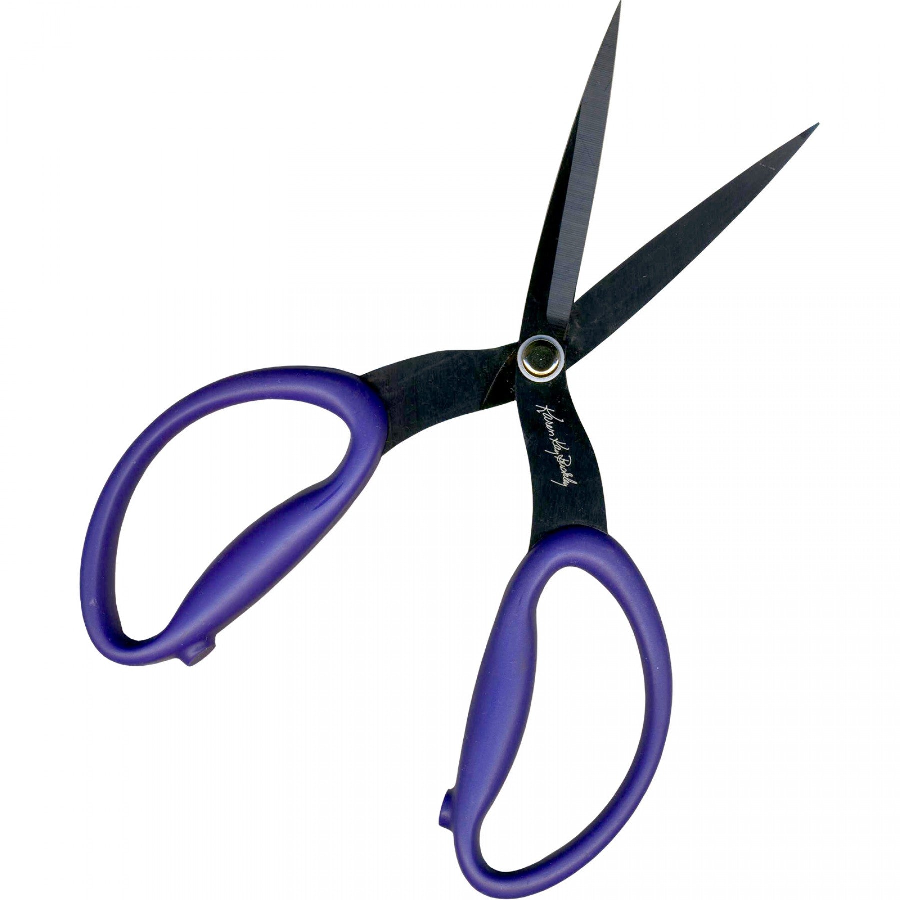 Karen Kay Buckley says "I have been using nothing but serrated edge scissors to cut my fabric for the past 25 years. I love the way the serrated blade cuts into my fabric. This special blade pulls the fabric into the scissors rather than pushing it away like traditional scissors. Things you will like about these scissors...cushioned handle, easy for right or left-hander to use, blades sharp to the very tip, serrated blade keeps the fabric from fraying, lightweight and comfortable. The 4" size are great for detail cutting on curves and points."