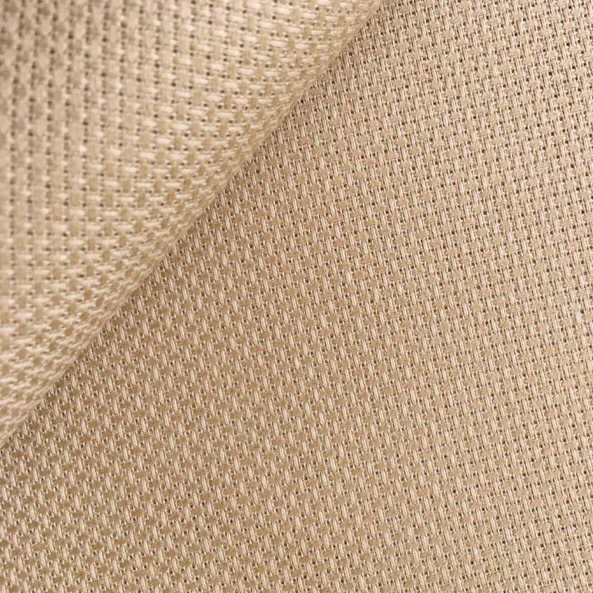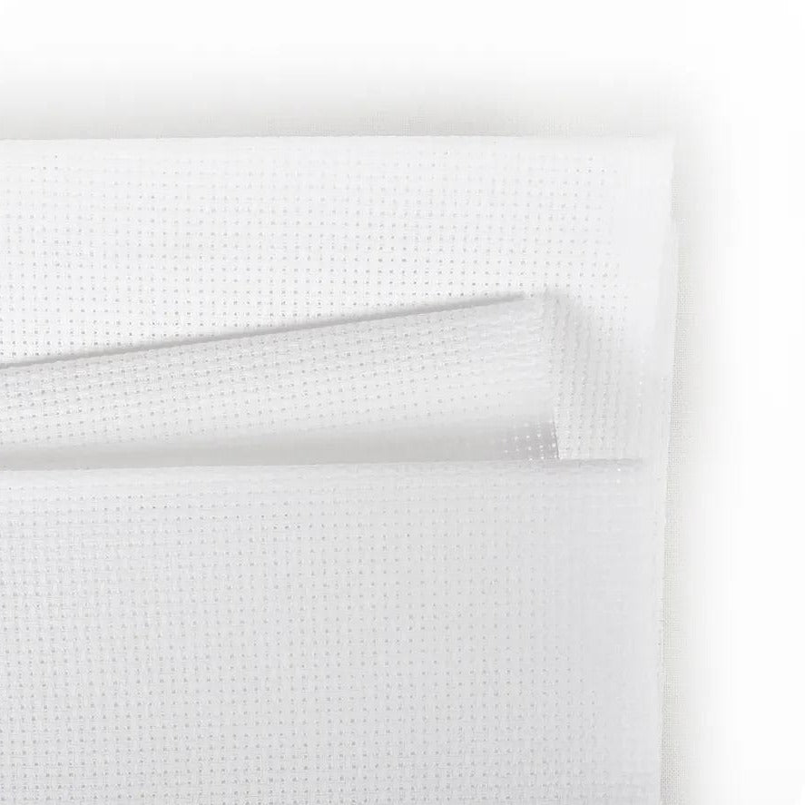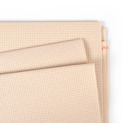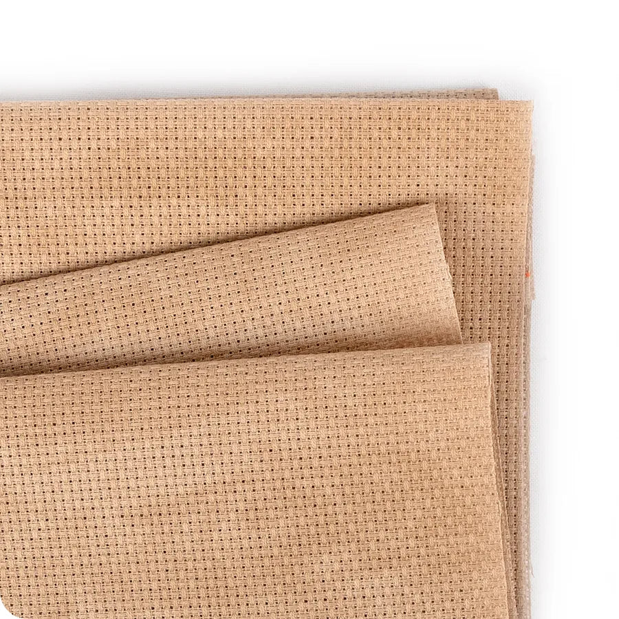 Aida is an open, even-weave fabric traditionally used for cross-stitch embroidery. This cotton fabric has a natural mesh that facilitates cross-stitching and enough natural stiffness that the crafter does not need to use an embroidery hoop.
