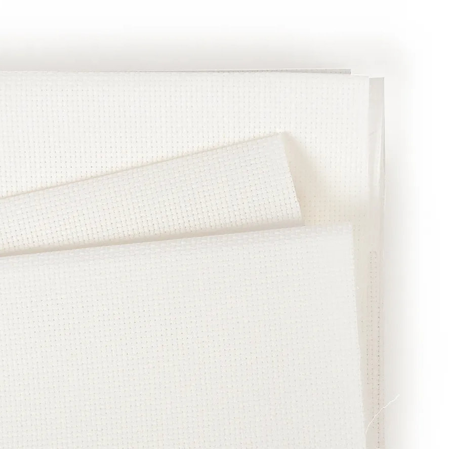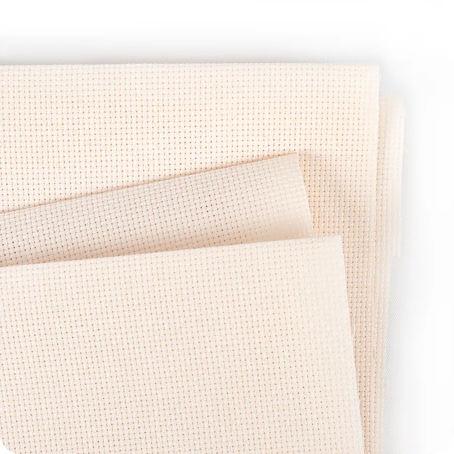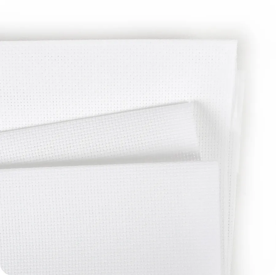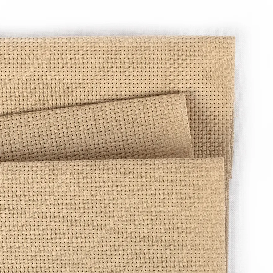 Aida is an open, even-weave fabric traditionally used for cross-stitch embroidery. This cotton fabric has a natural mesh that facilitates cross-stitching and enough natural stiffness that the crafter does not need to use an embroidery hoop.